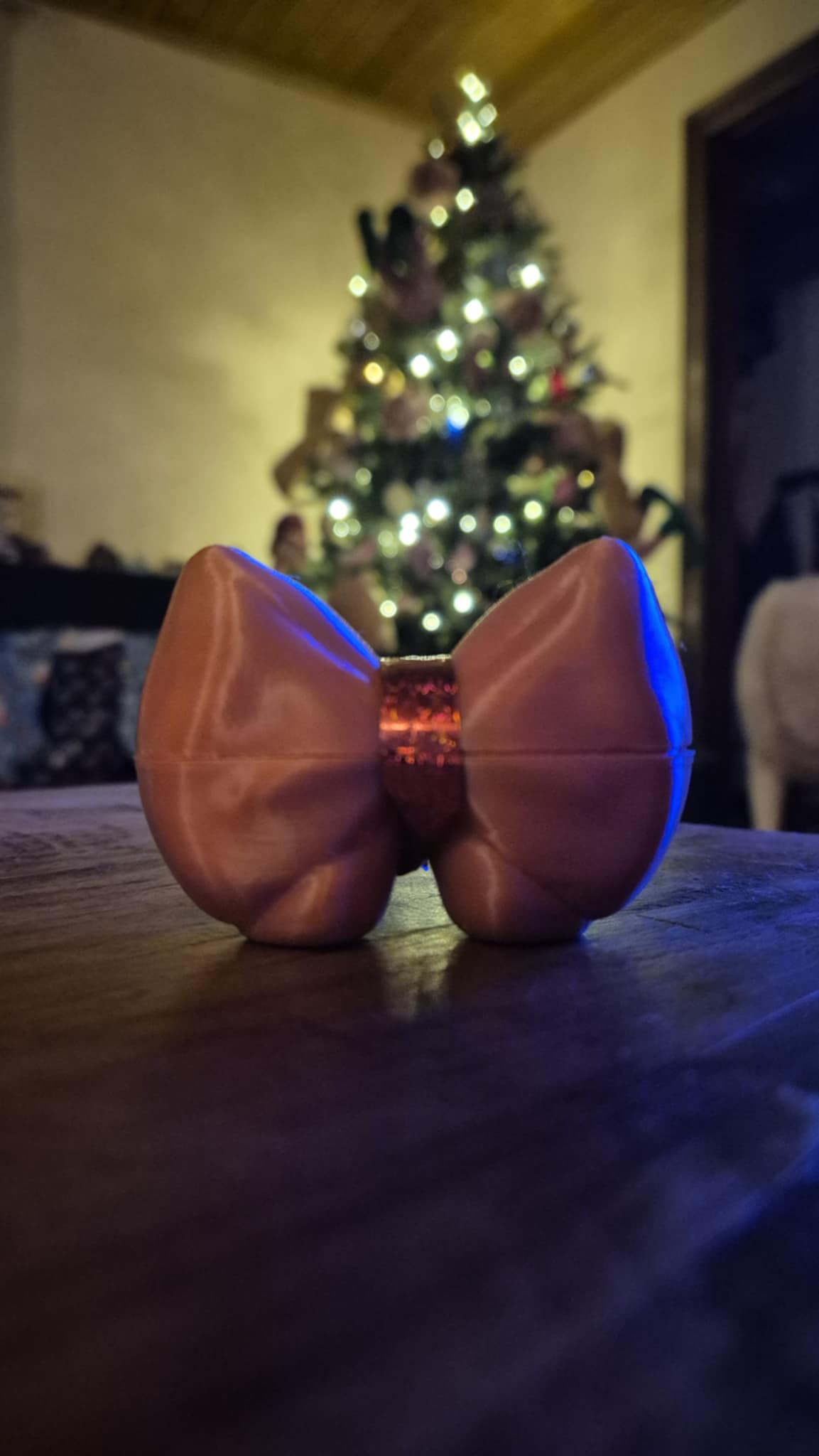 Een strik met een verrassing! Deze elegante 3D-geprinte strik is meer dan decoratie: onder het glanzende middenstuk verbergt zich een klein vakje, perfect om een ring, oorbellen of een symbolisch centje in te bewaren. Ideaal als geschenkverpakking voor een bijzonder moment – van verjaardag tot jubileum.