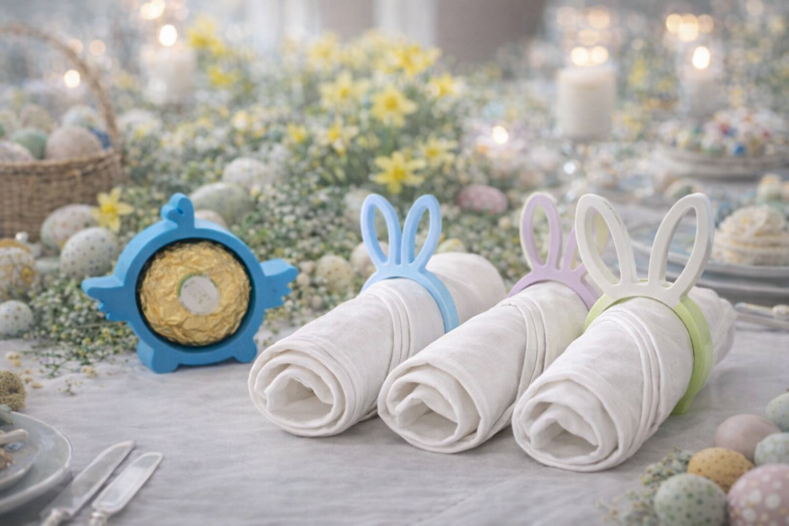 Breng instant paasvreugde op tafel met deze schattige 3D-geprinte houdertjes in de vorm van een paashaasje of vrolijk kuikentje. Elk figuurtje is zorgvuldig geprint, mooi afgewerkt en gevuld met een Ferrero Rocher — ideaal als cadeautje, tafeldecoratie of kleine attentie voor je gasten.
