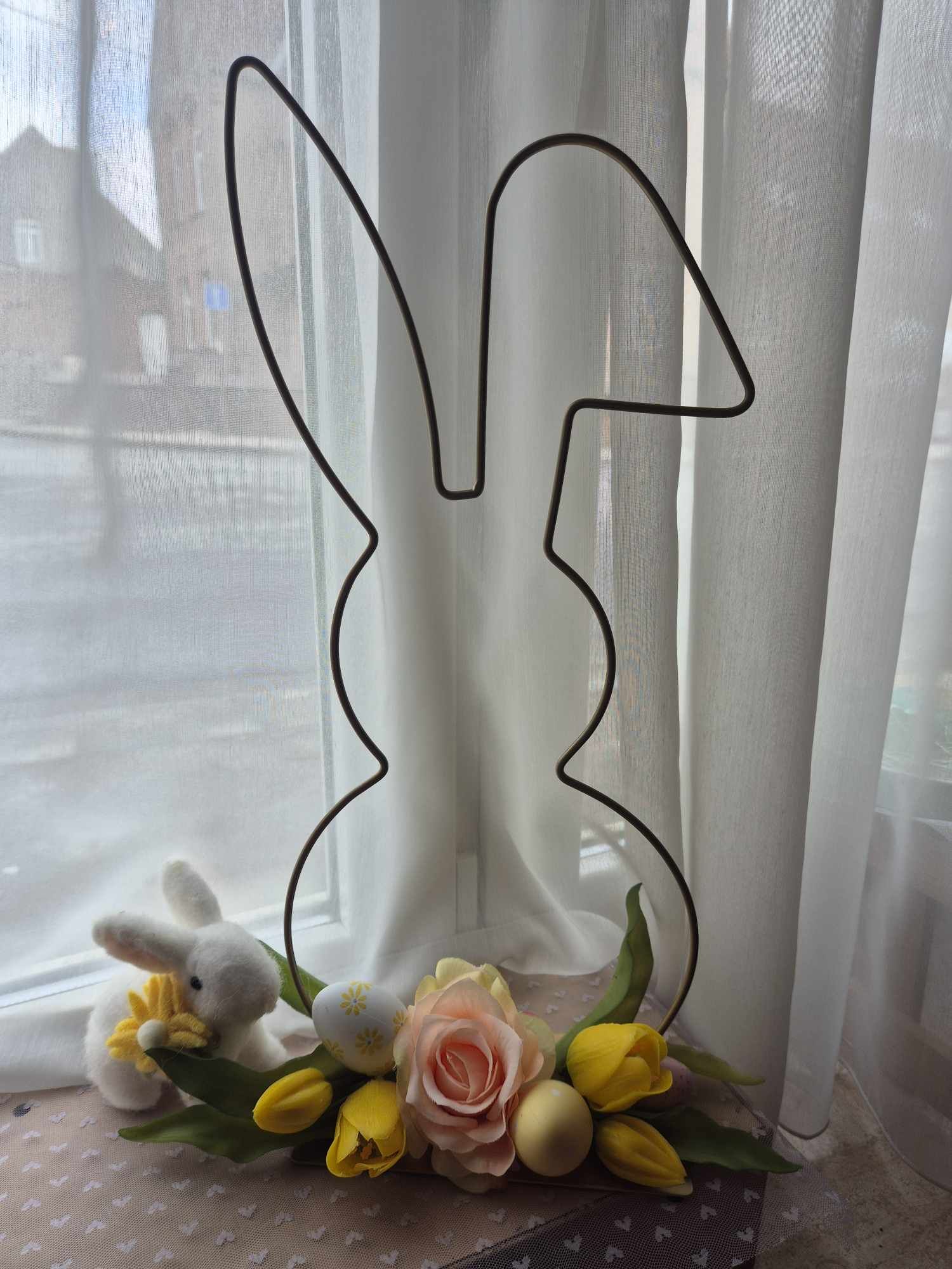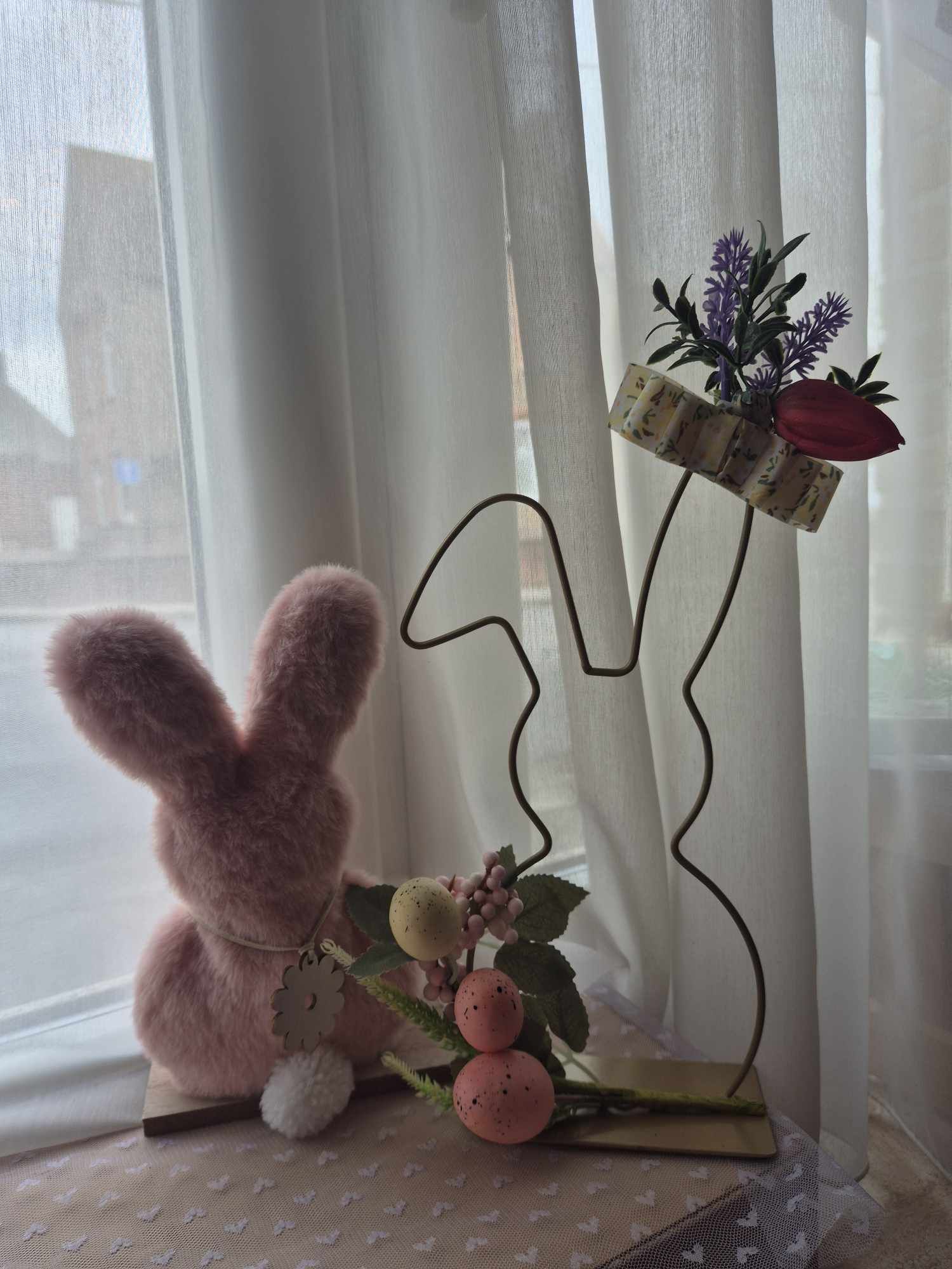 Deze staande konijnenframes brengen een vleugje lente in elk interieur. Elk frame wordt met de hand versierd met zorgvuldig gekozen kunstbloemen, waardoor elk stuk een unieke, zachte en vrolijke uitstraling krijgt. De minimalistische draadvorm van het konijn zorgt voor een elegante, luchtige look die perfect past op een vensterbank, dressoir of feesttafel.