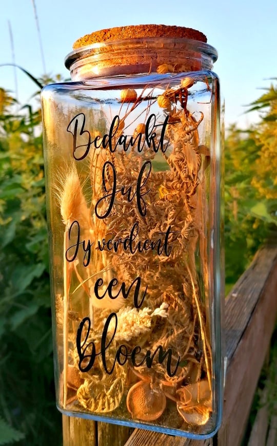 - Ook beschikbaar in een doorzichtige glazen pot met droogbloemen