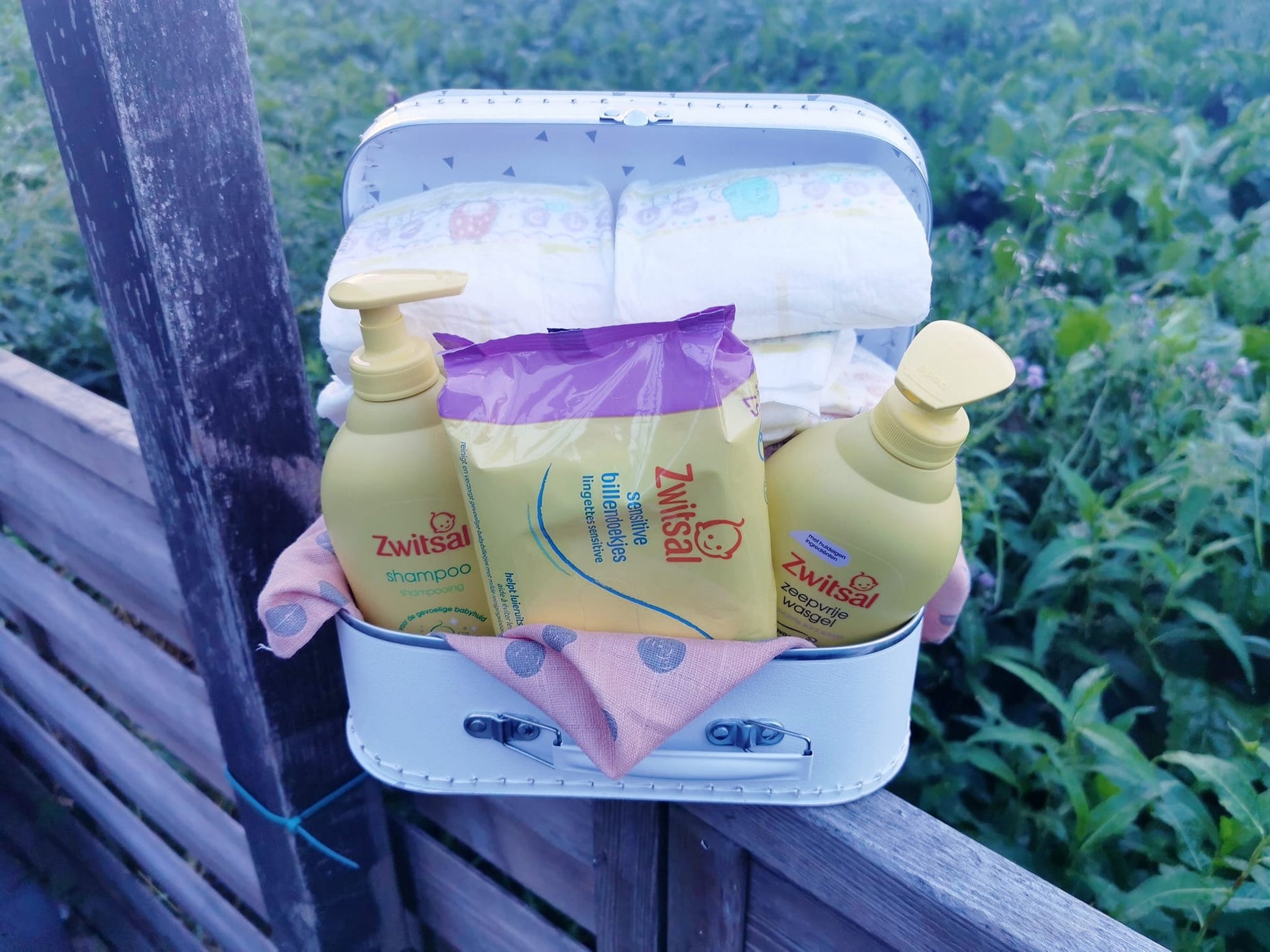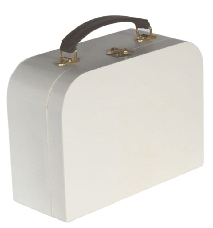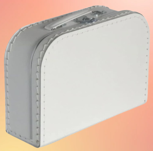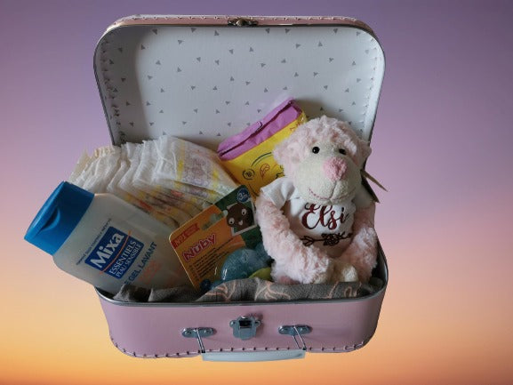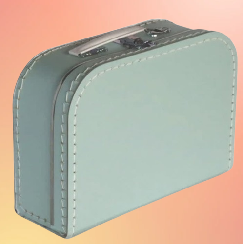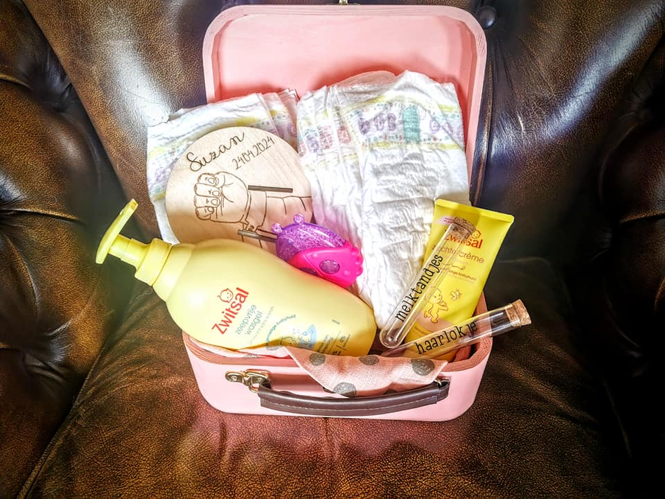 Je kan het koffertje leeg bestellen en zelf vullen met kleine cadeautjes