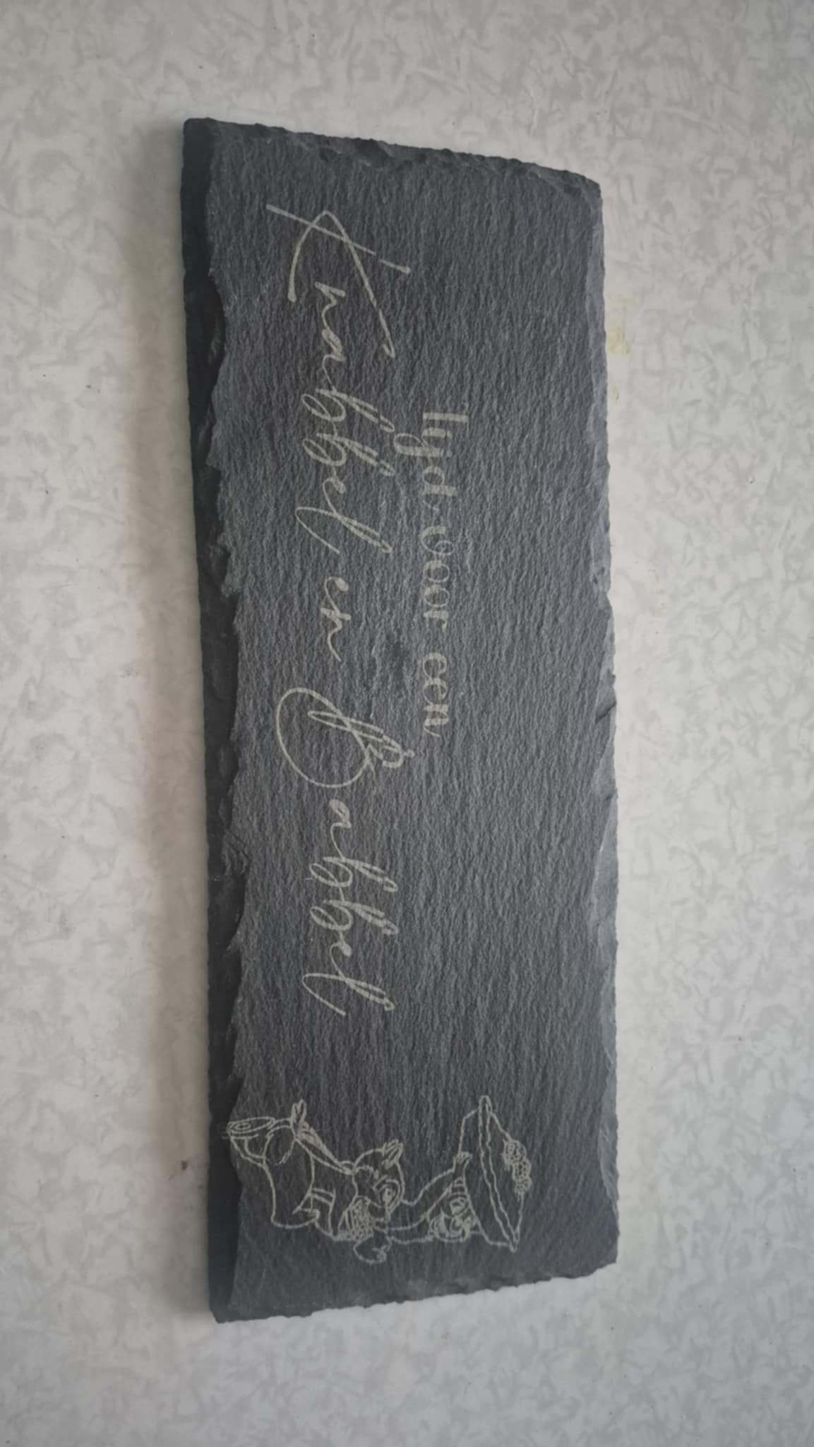 Decoratieve leisteen met warme boodschap en speelse gravure. Een hartelijk geschenk voor wie houdt van gezelligheid.